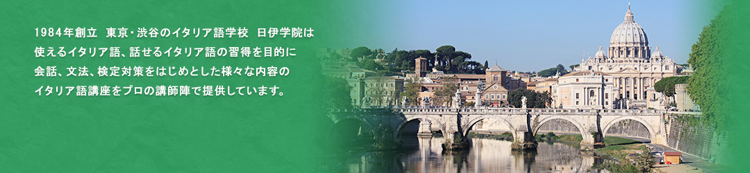 日伊学院は、使えるイタリア語、話せるイタリア語の習得を目的に、会話・文法・講読・検定・翻訳ほか、様々な内容とレベルのイタリア語を、プロの講師陣で提供しています。