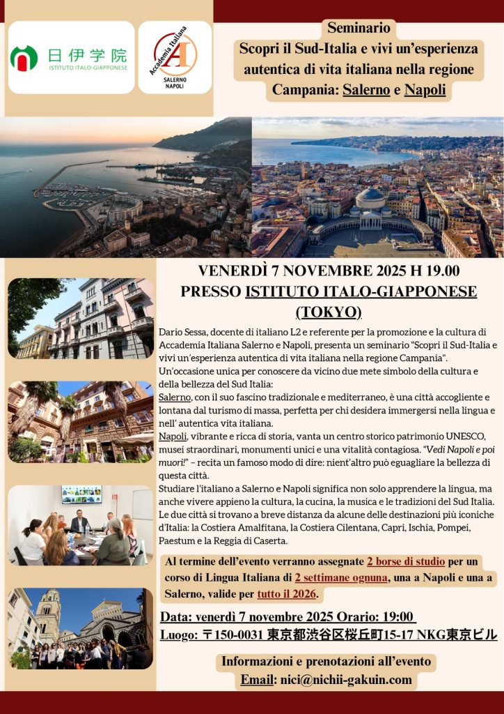 アカデミア・イタリアーナ サレルノ&ナポリは、このたび東京の日伊学院にて特別イベントを開催できることを大変嬉しく思います。